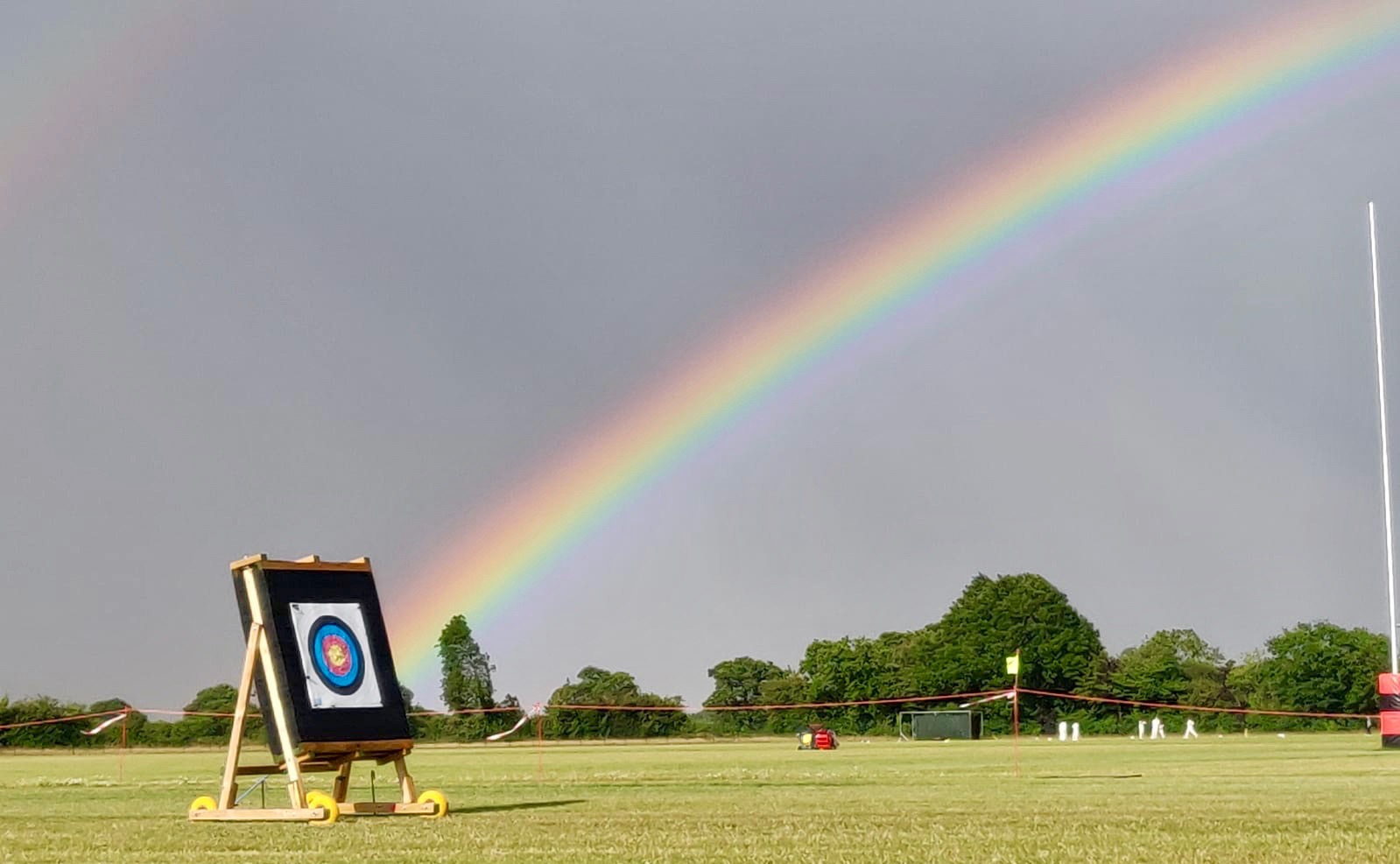 Does it get any better than this. The arc of a rainbow centering on the gold of a target; with Archery, Cricket and Rugby all in the same photo. Truly depicting the Archers Paradox... You dont' get views like this without there being a drop of rain in the air. But what a shot... in so many ways.