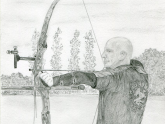 Here's a little taster of things that can happen at a tournament. A budding artist took the time to draw an unsuspecting archer and it happened to be your Chair. How surprised was I and the likeness is rather spooky - Eek! that really is a freaky front arm isn't it!