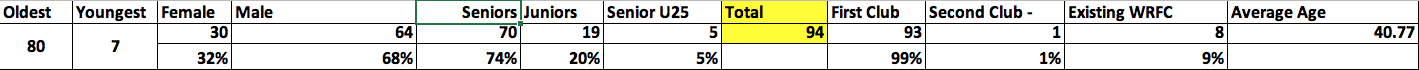 We are growing fast. Our overall membership is up to a respectable 94 members - and includes one member who is a second club member. I am very pleased to report that our membership range is from 7 - 80 years. Our youngest being the son of one of our archers and the oldest pulls the heaviest bow in the club at a whopping 100lbs. We have 17 members in our junior club and 5 intermediates (18-25) but most of our archers are over 40 at just over 52%. One statistic we are proud of in particular is that over 32% of our archers are women. Here are a few more of the statistics that you might like to take a look at.