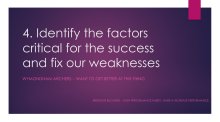 4. Identify the factors critical for the success and develop our strengths in those areas - and fix our weaknesses with equal fervour.