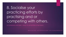 8. Socialise your practicing efforts by practising and or competing with others.