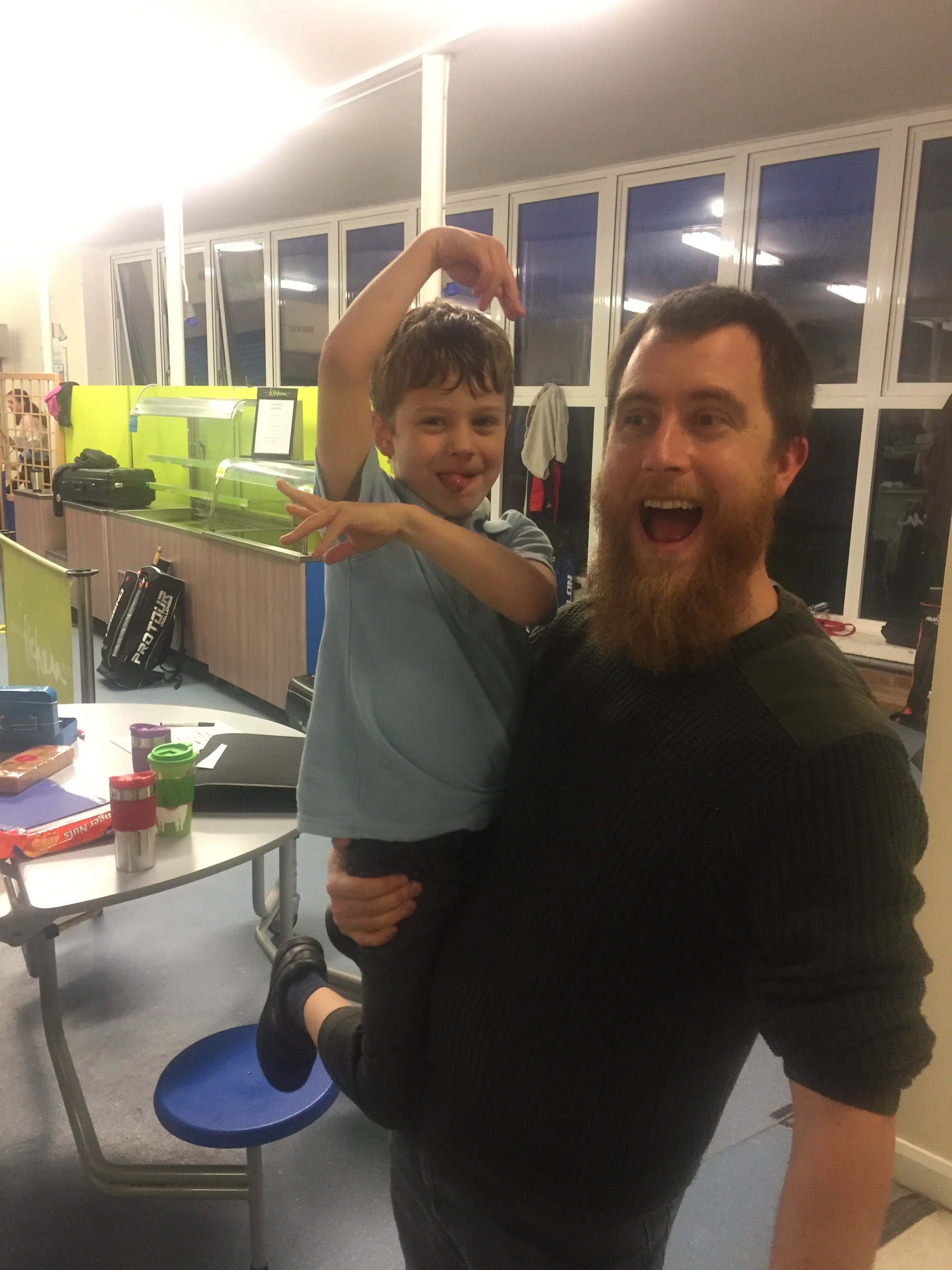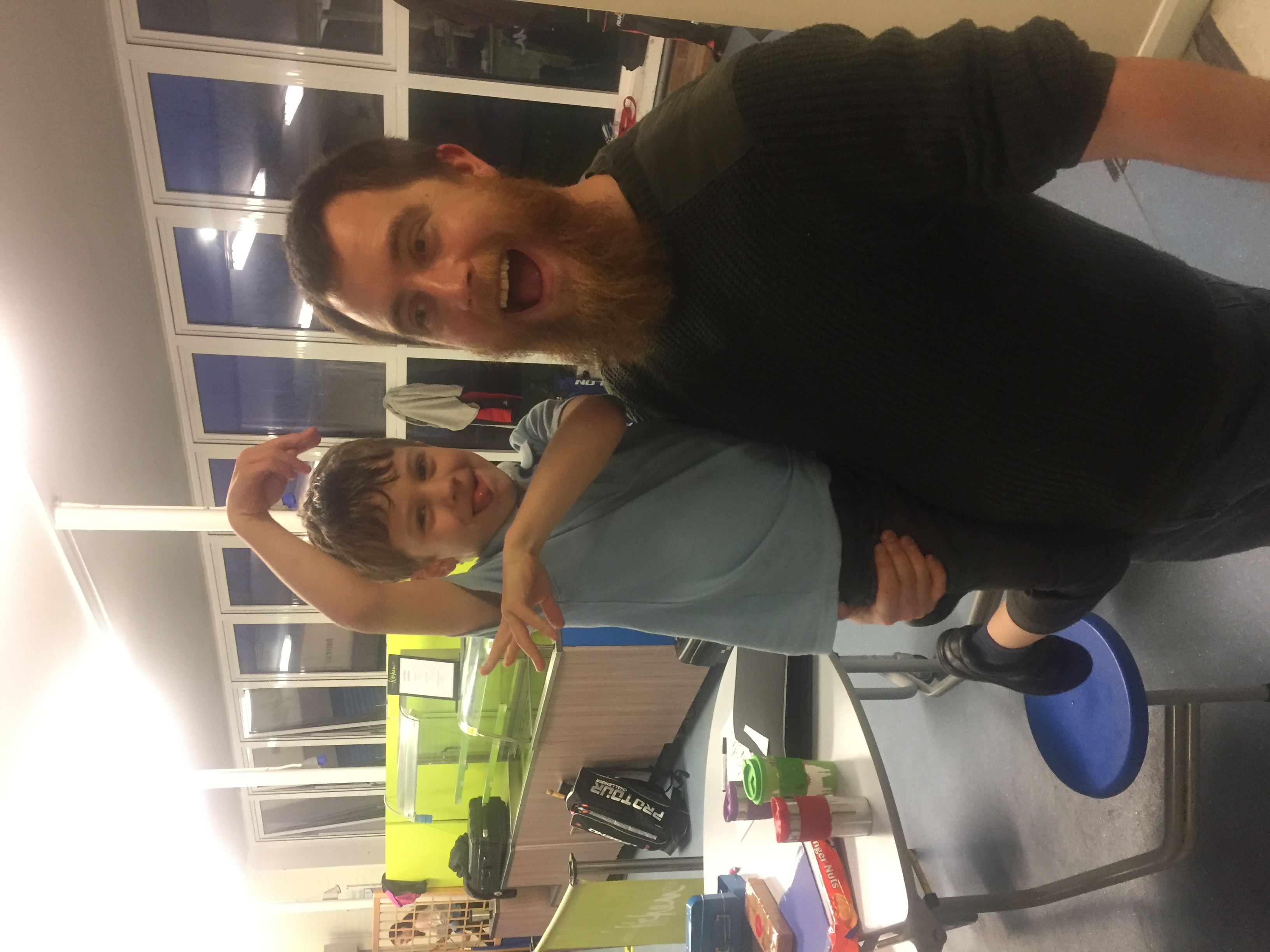 A tired Dad and young Owen on a quick visit to the club on Wednesday (20th March 2019), just before popping to the shops for provisions.
