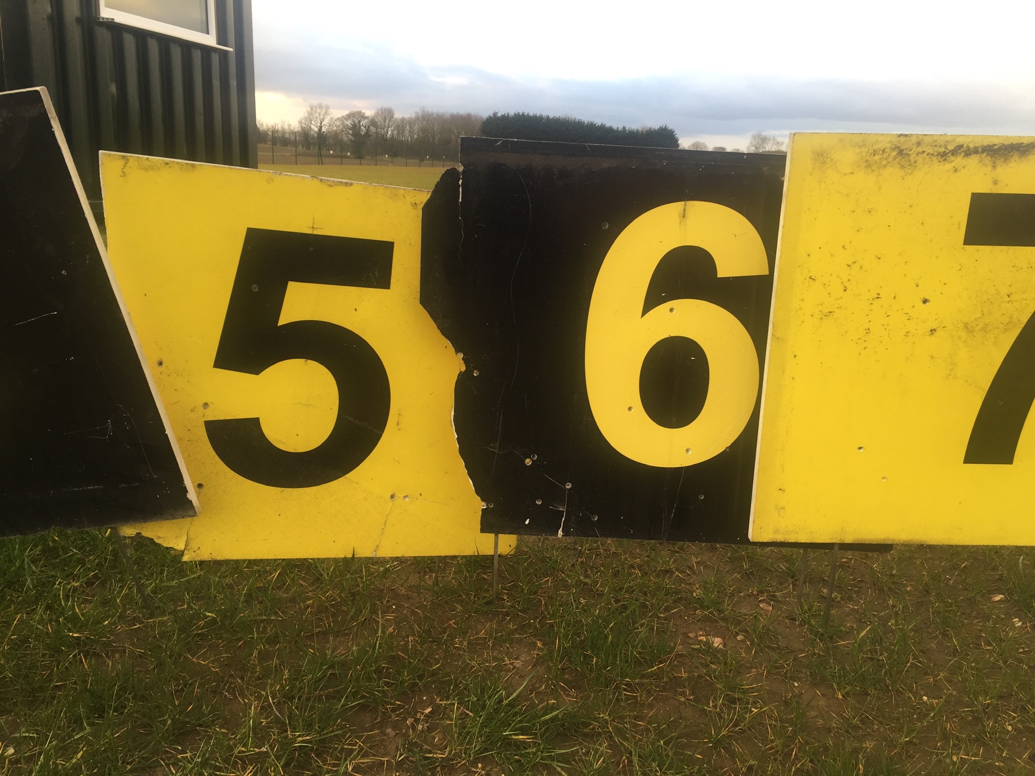 There is some damage on two of the number boards, if any of our archers would be kind enough to make the repairs we'd be eternally grateful. Please email the Chair.